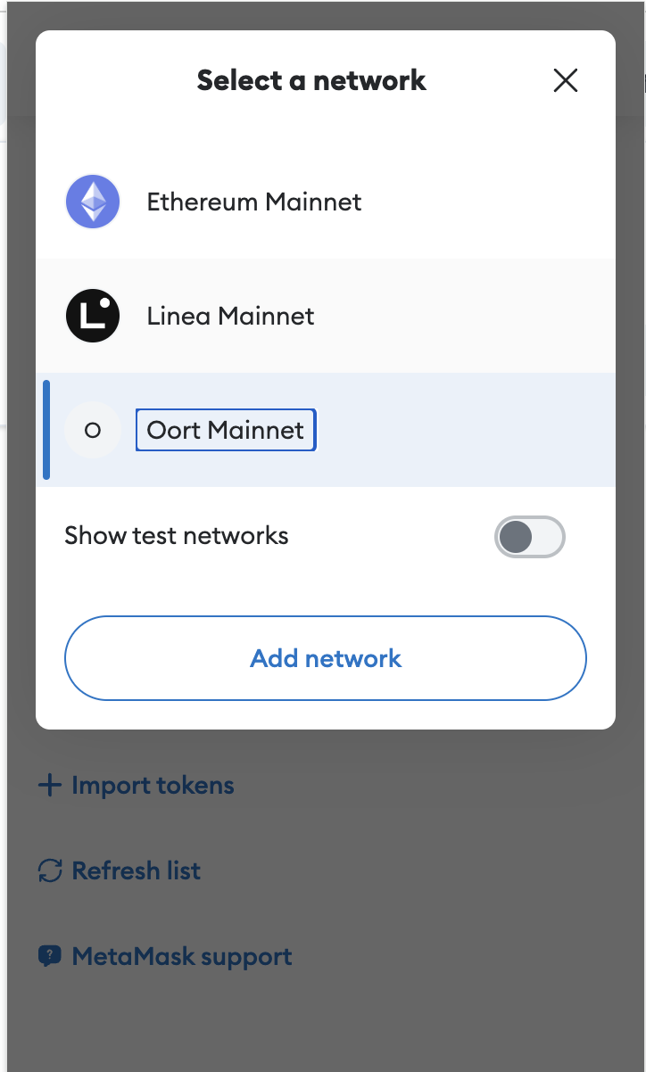 Once approved, you will select “OORT Mainnet” in the network list. Then, you can send and receive OORT token in Metamask.
